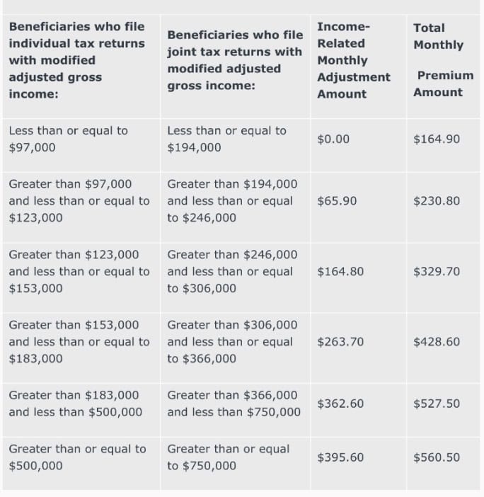 Since 2007, a beneficiary’s Part B monthly premium is based on his or her income. These income-related monthly adjustment amounts affect roughly 7% of people with Medicare Part B. The 2023 Part B total premiums for high-income beneficiaries with full Part B coverage are shown in the following table: