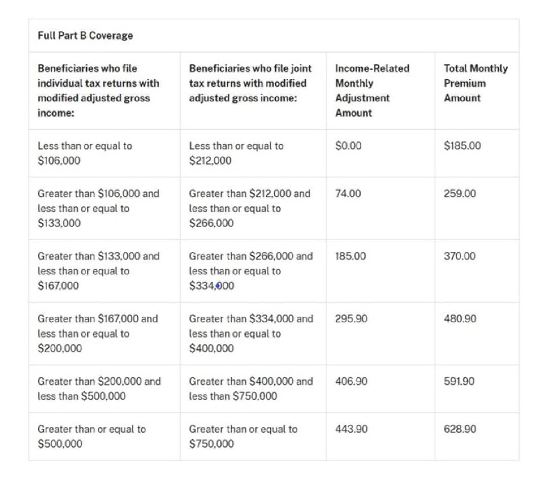 2025 Medicare Part B Income-Related Monthly Adjustment Amounts