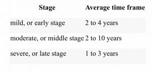 The three-stage scale is one scale that many doctors use to describe the typical progression of Alzheimer’s disease:
