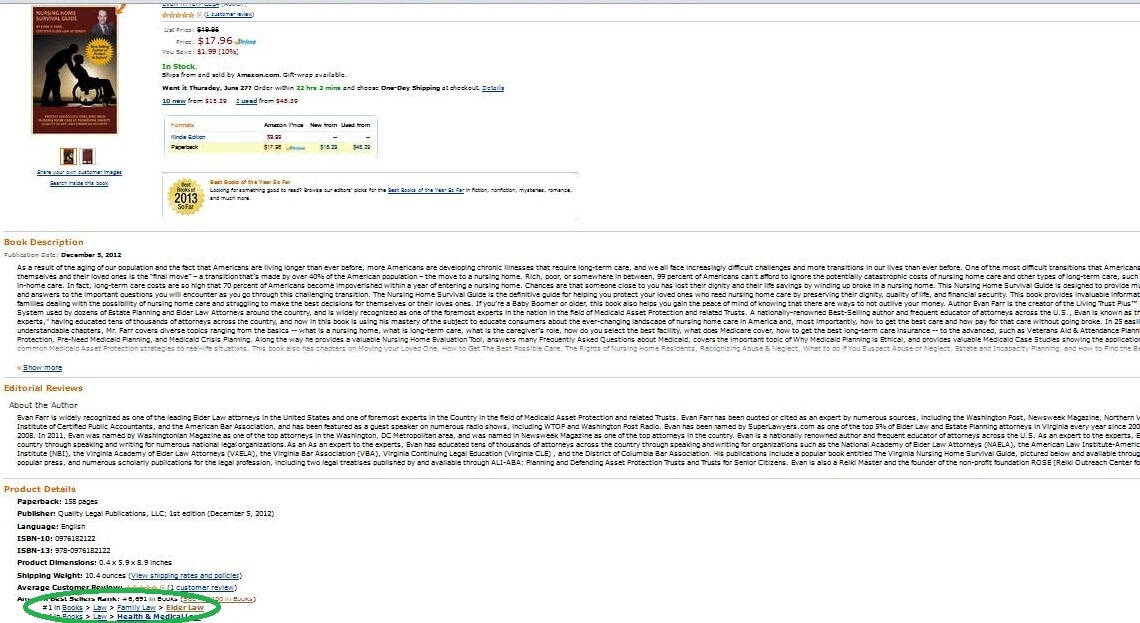 Evan Farr’s Nursing Home Survival Guide is a #1 Best Seller
