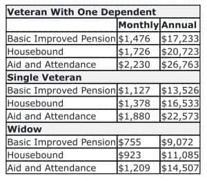 The VA Pension amounts will increase starting January 1, 2019 by 2.8% (amount might vary slightly depending on how the VA rounds dollar amounts.) The new amounts are listed below: